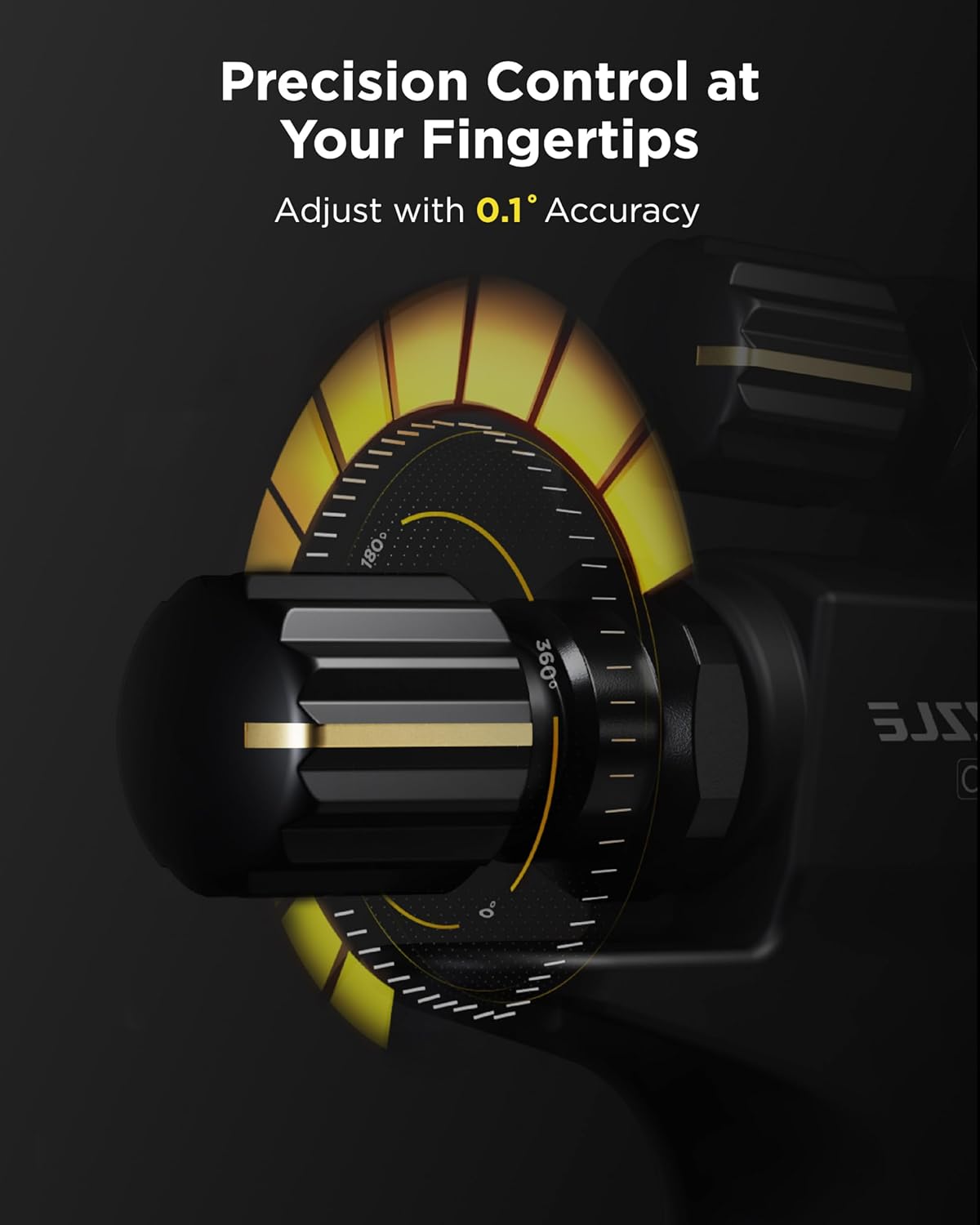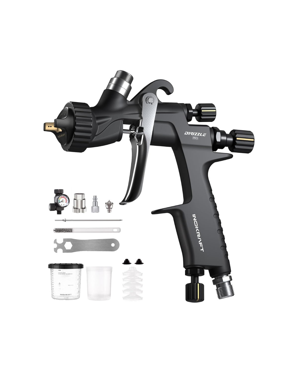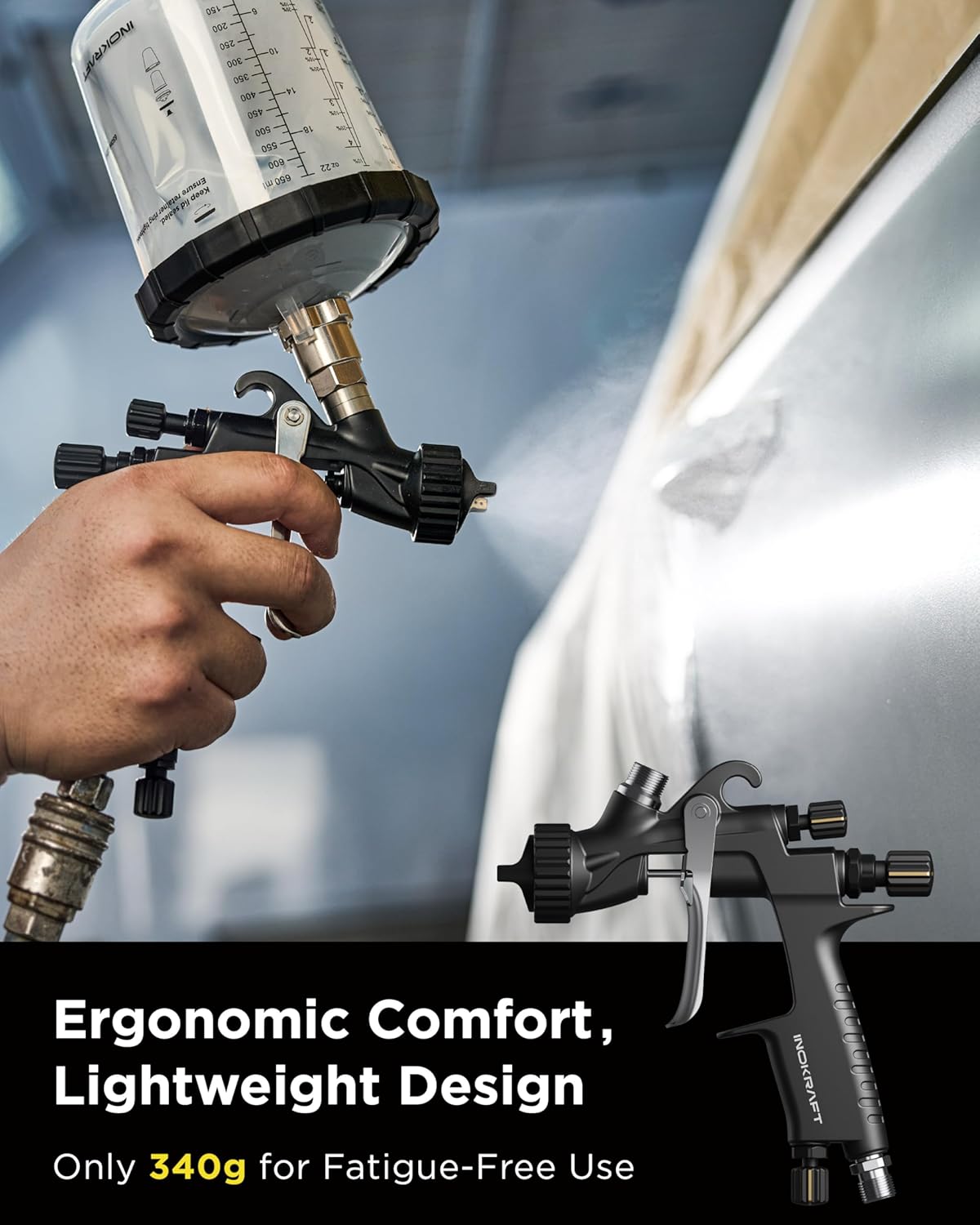 - Race-Inspired Precision Control: Three knobs offer infinite, stepless linear adjustments—suitable for experts demanding pixel-level control. The go-to gun for automotive primers, basecoats and clearcoats.