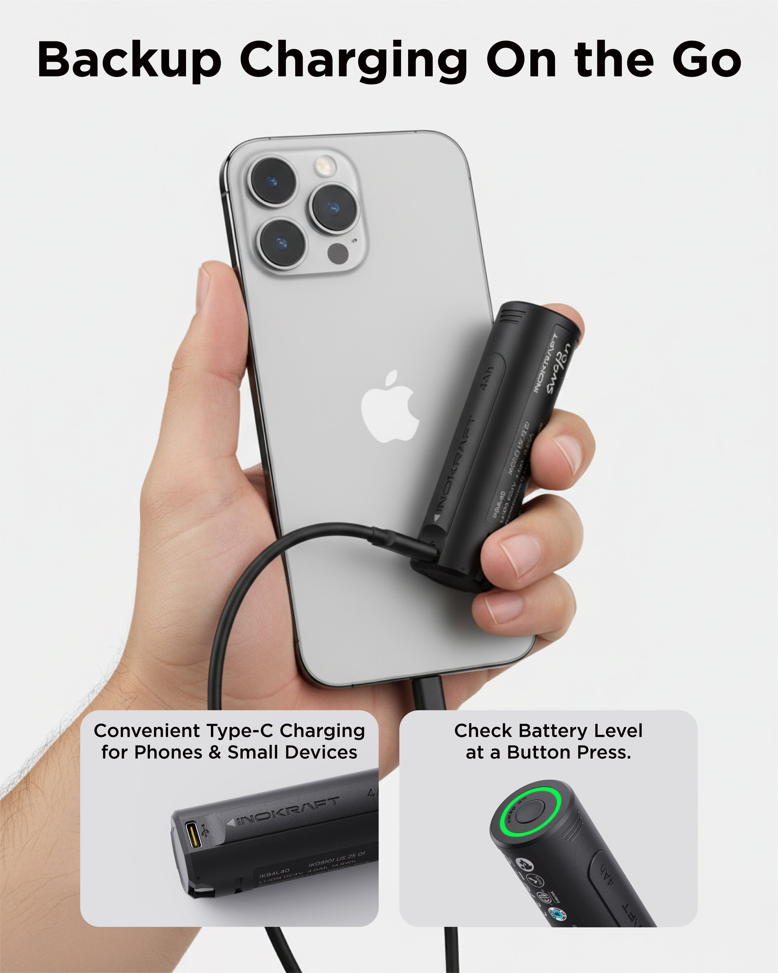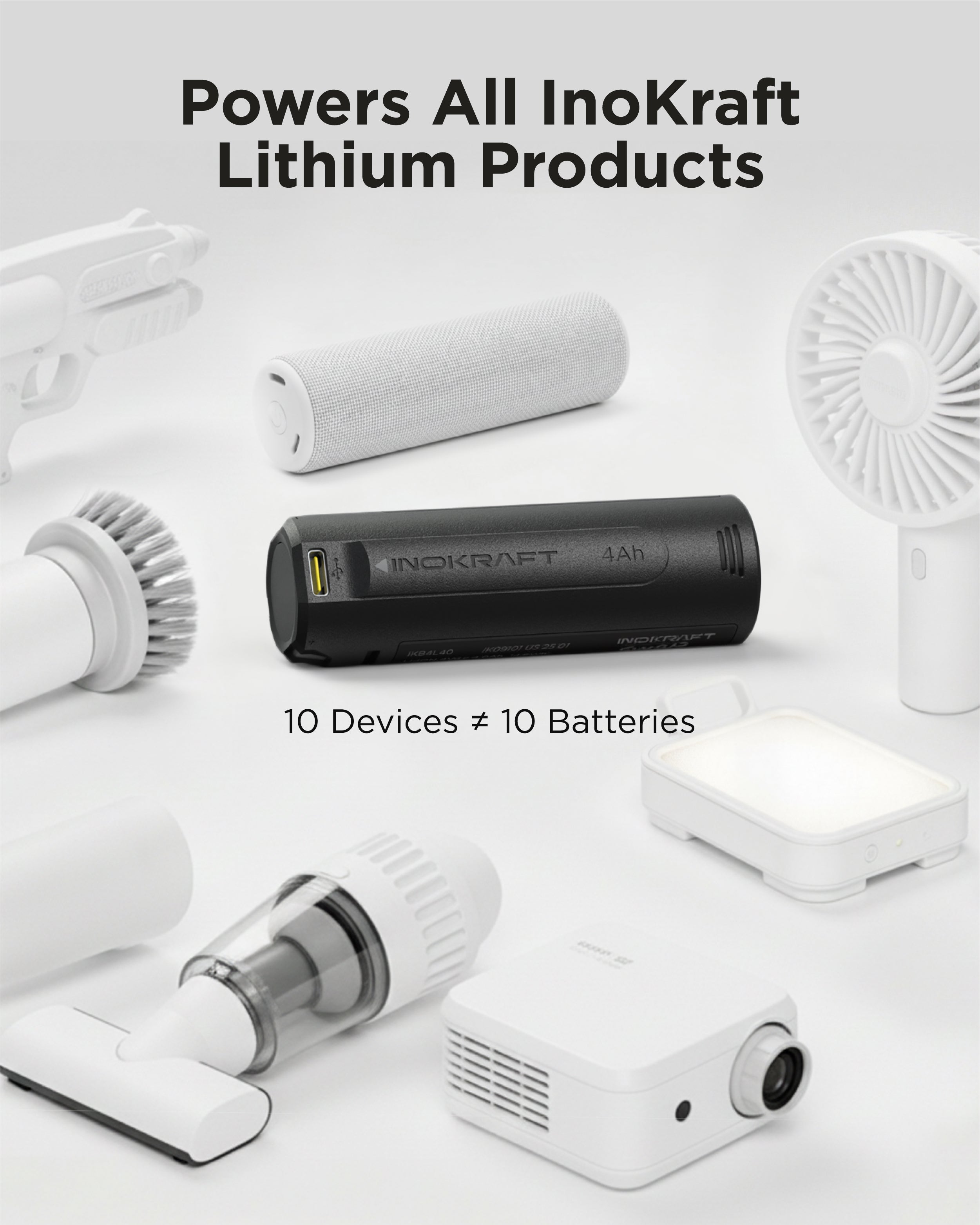 - Detachable Design: Detachable lithium battery for quick swaps — no more battery anxiety. Compatible with all lithium products in the InoKraft Swap-On Ecosystem, allowing power sharing across devices.