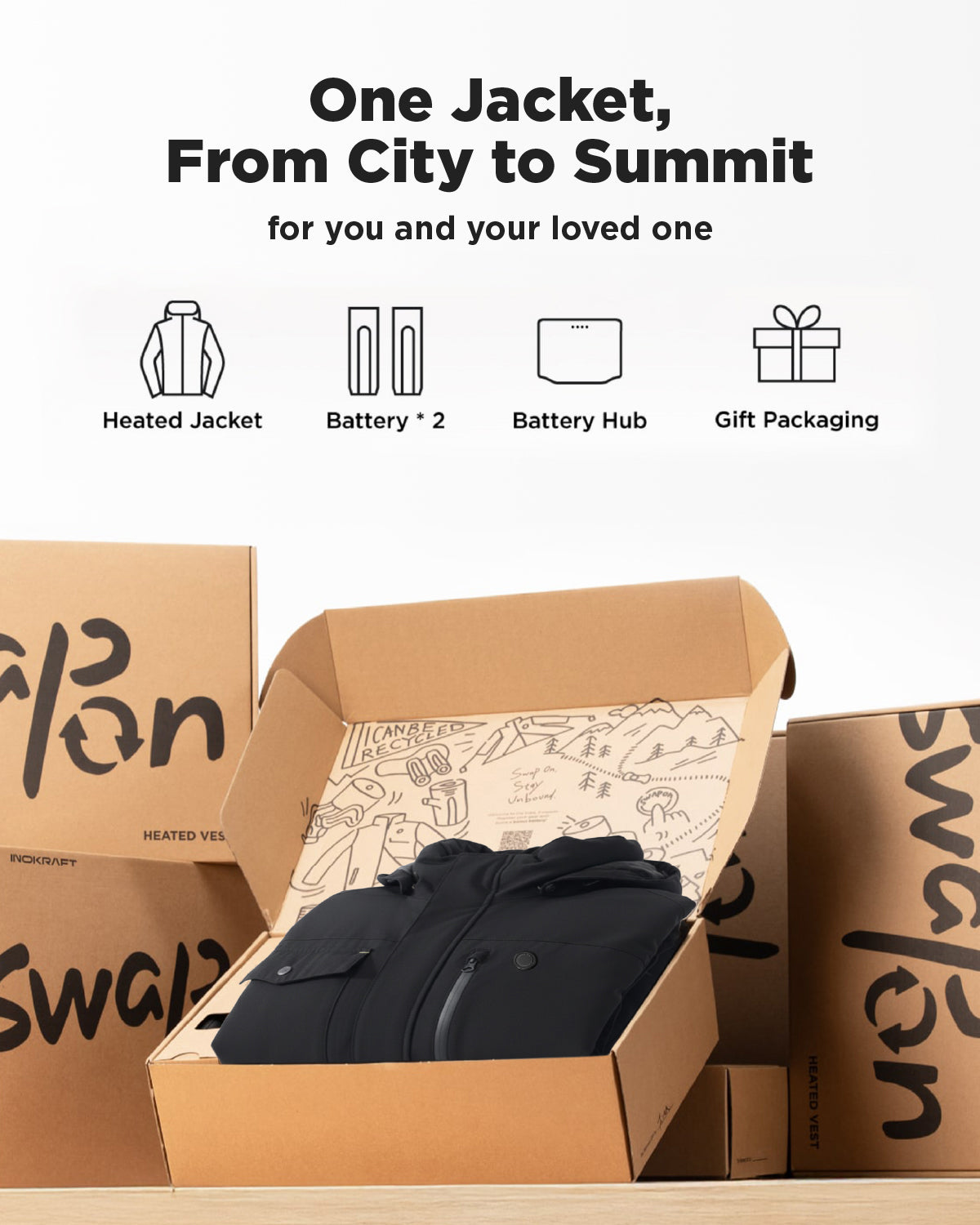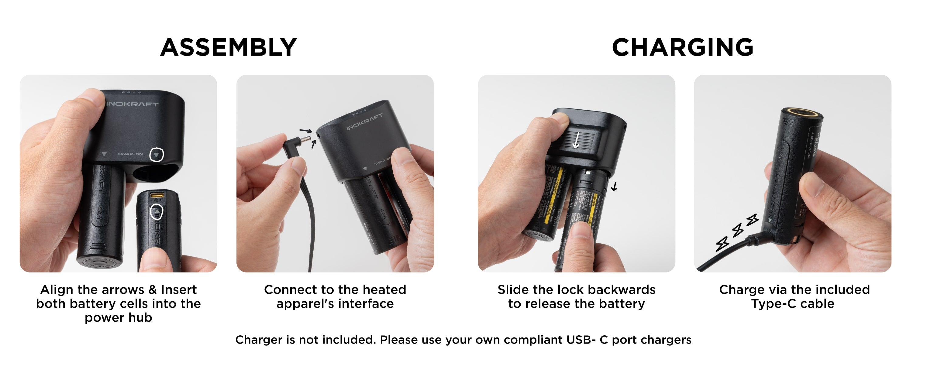 • Power You Can Rely On: Powered by two swappable 4000mAh Li-ion cells, engineered for extreme cold and giving you extended runtime without limits. With a USB-C port(Charger Not Included), the battery doubles as a power bank for your phone, earbus, or other upcoming InoKraft devices.