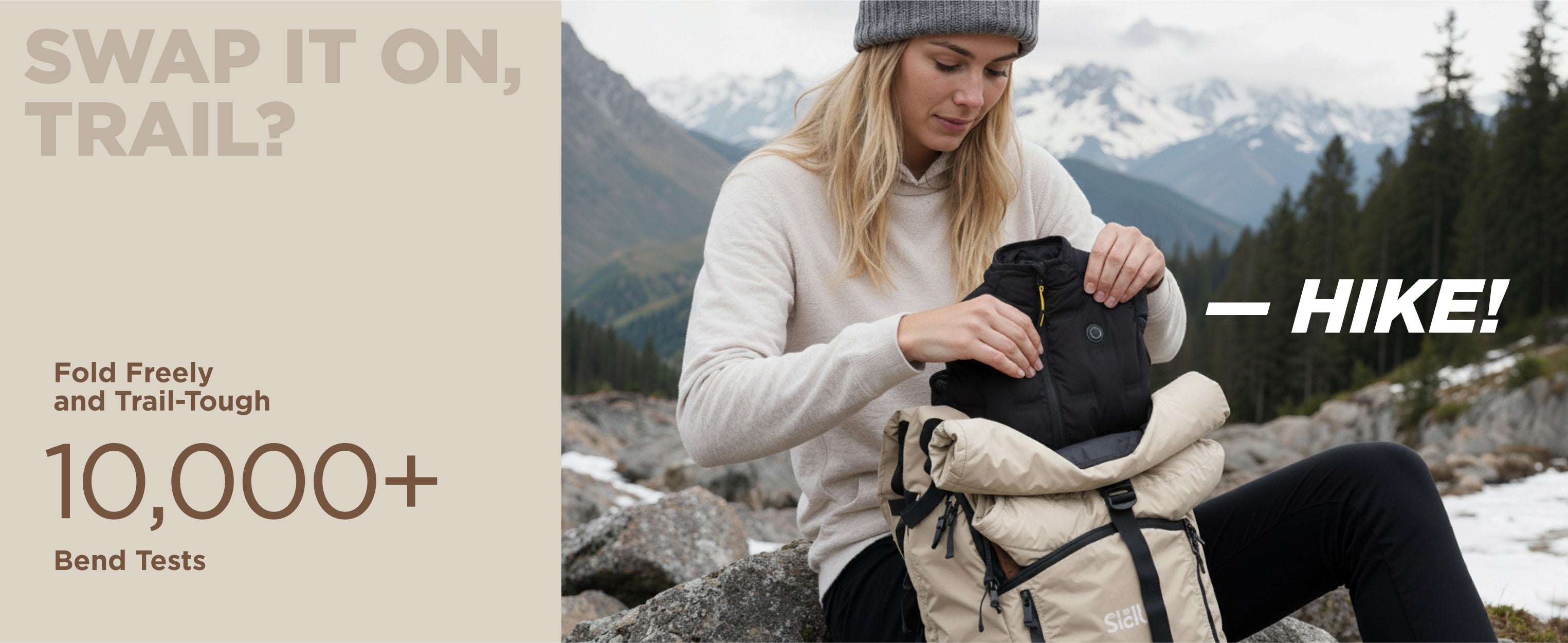 - All-Day Cozy Warmth: Powered by two swappable 4000mAh Li-ion cells, engineered for extreme cold and giving you extended runtime without limits. With a USB-C port(Charger Not Included), the battery doubles as a power bank for your phone, earbus, or other upcoming InoKraft devices.